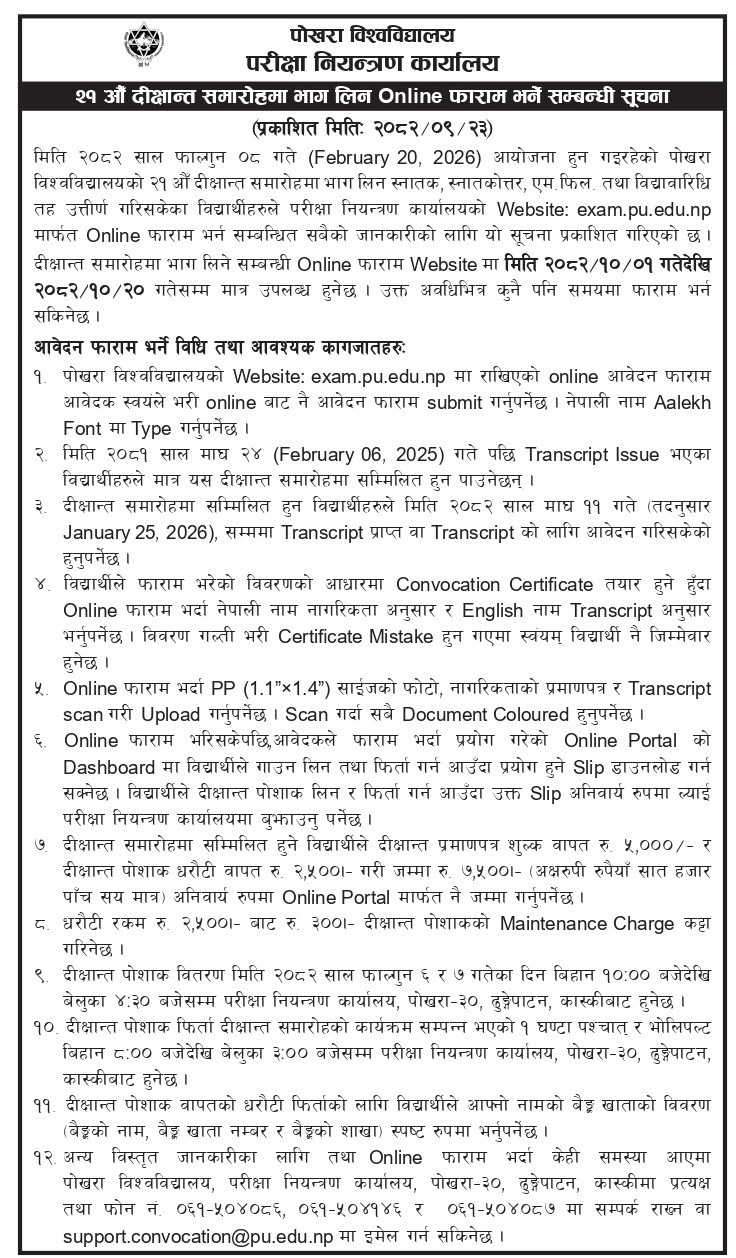 Official Notice: 21st Convocation Ceremony (Pokhara University)