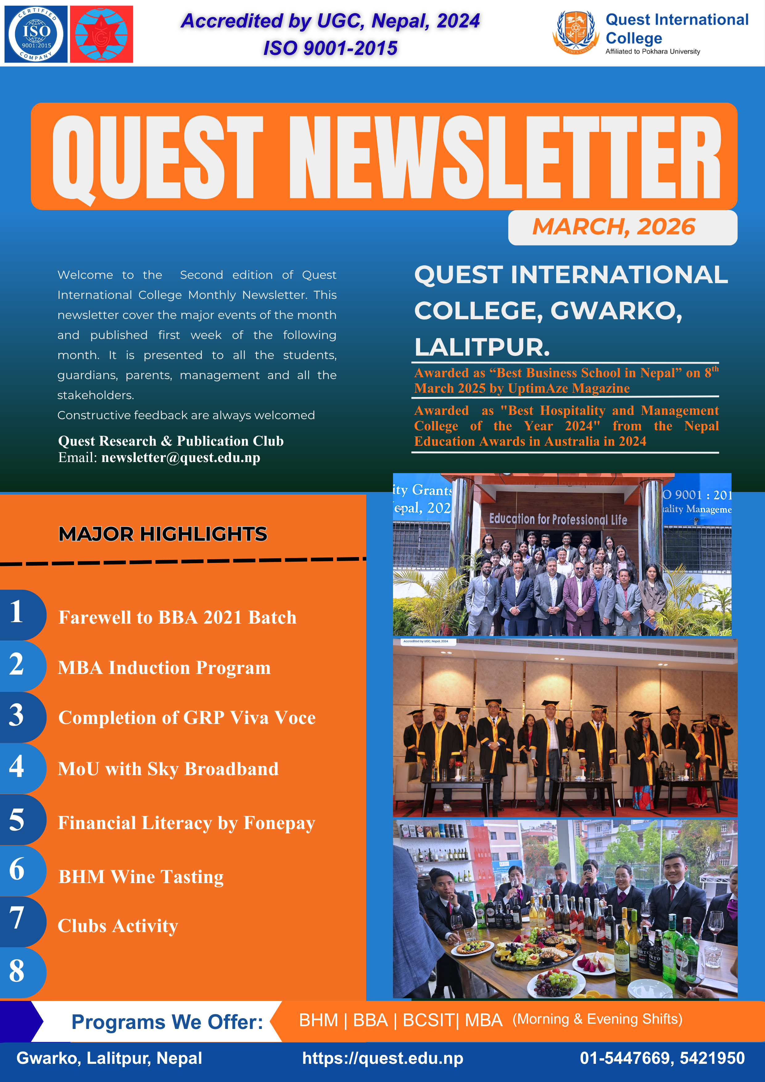 Quest International College Gwarko, Lalitpur - a leading Pokhara University-affiliated management college in Nepal, proudly releases the March 2026 Quest Newsletter.